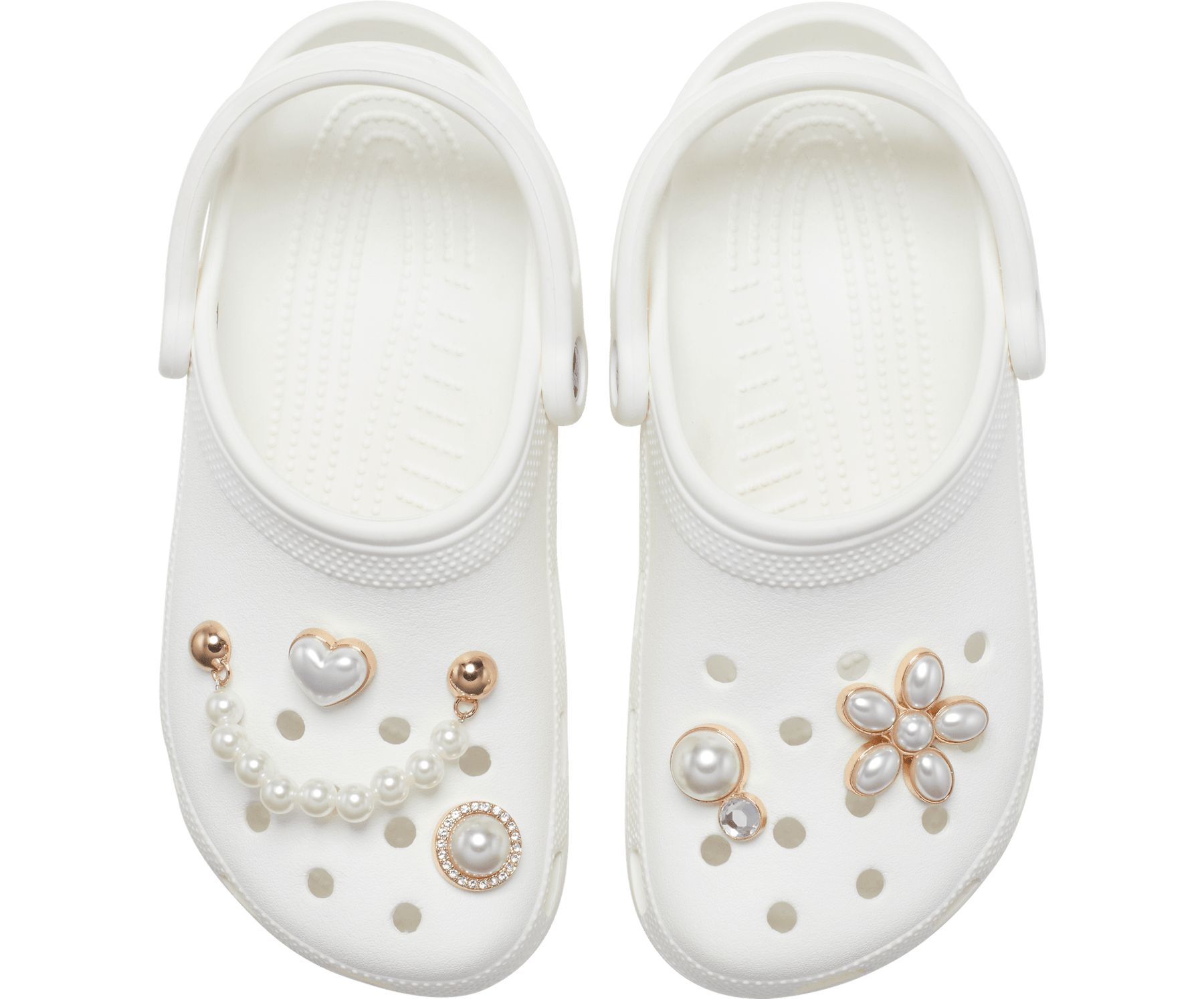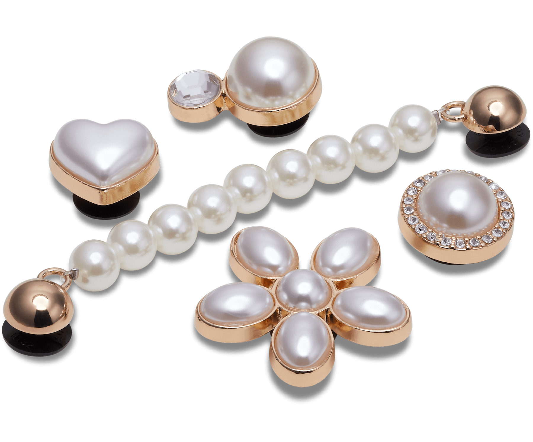 Pop some personality into your shoes with this Dainty Pearl Jewelry 5 Pack Jibbitz™ charm. It's the perfect addition to your favorite pairs of clogs, slides, and more. Not a toy. Not intended for children under 3 years of age.Kindly click Size Chart above Add to Cart button to refer the Crocs size chart for each product line including Men's, Women's, and Kids'. Or you can explore more information at here