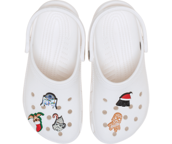 Pop some personality into your shoes with this Star Wars Christmas 5 Pack Jibbitz™ charm. It's the perfect addition to your favorite pairs of clogs, slides, and more. Not a toy. Not intended for children under 3 years of age.