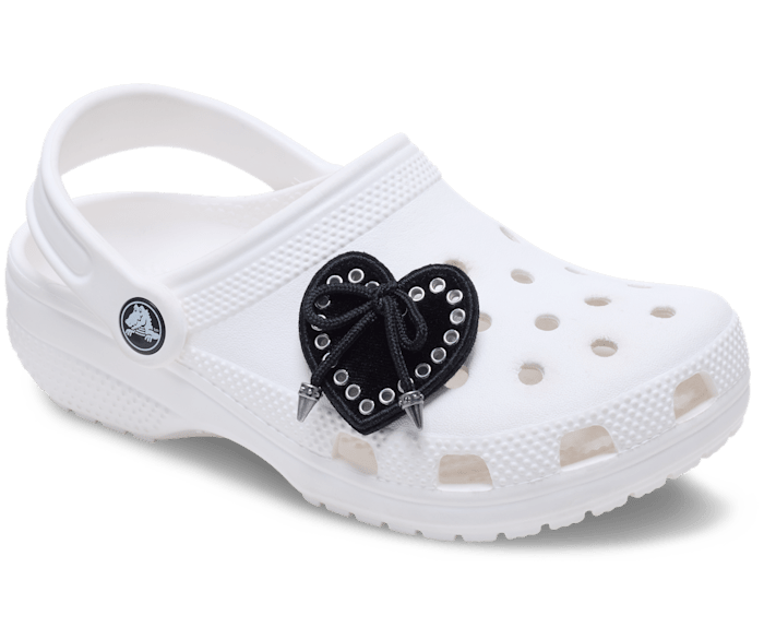 Pop some personality into your shoes with this Black Heart with Bow Jibbitz™ charm. It's the perfect addition to your favorite pairs of clogs, slides, and more. Not a toy. Not intended for children under 3 years of age.