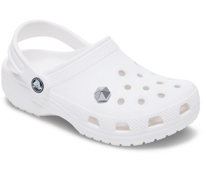 Pop some personality into your shoes with this Silver Hexagon Stud Jibbitz™ charm. It's the perfect addition to your favorite pairs of clogs, slides, and more. Not a toy. Not intended for children under 3 years of age.