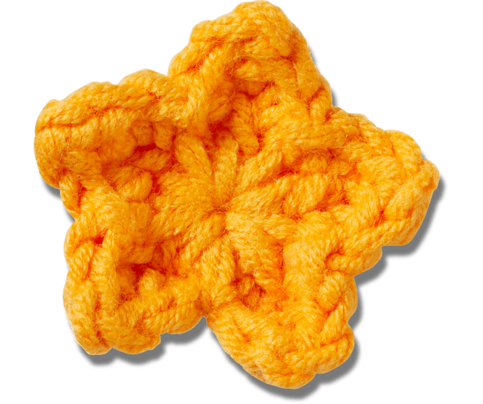 Pop some personality into your shoes with this Crafted Crochet Orange Star Jibbitz™ charm. It's the perfect addition to your favorite pairs of clogs, slides, and more. Not a toy. Not intended for children under 3 years of age.