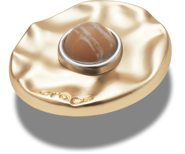 Pop some personality into your shoes with this Gold Distressed Stone Jibbitz™ charm. It's the perfect addition to your favorite pairs of clogs, slides, and more. Not a toy. Not intended for children under 3 years of age.