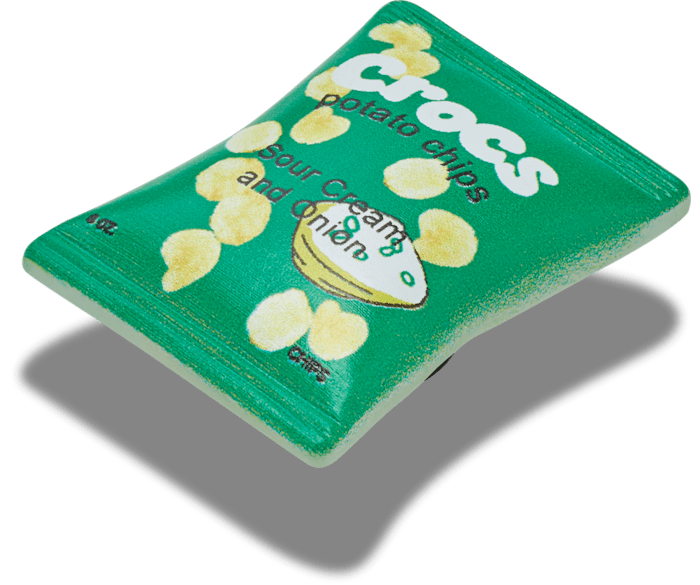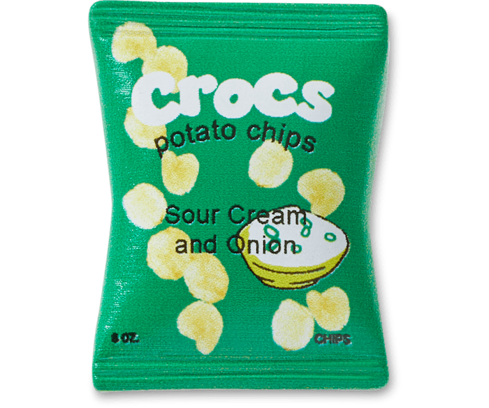Pop some personality into your shoes with this Green Chip Bag Jibbitz™ charm. It's the perfect addition to your favorite pairs of clogs, slides, and more. Not a toy. Not intended for children under 3 years of age.