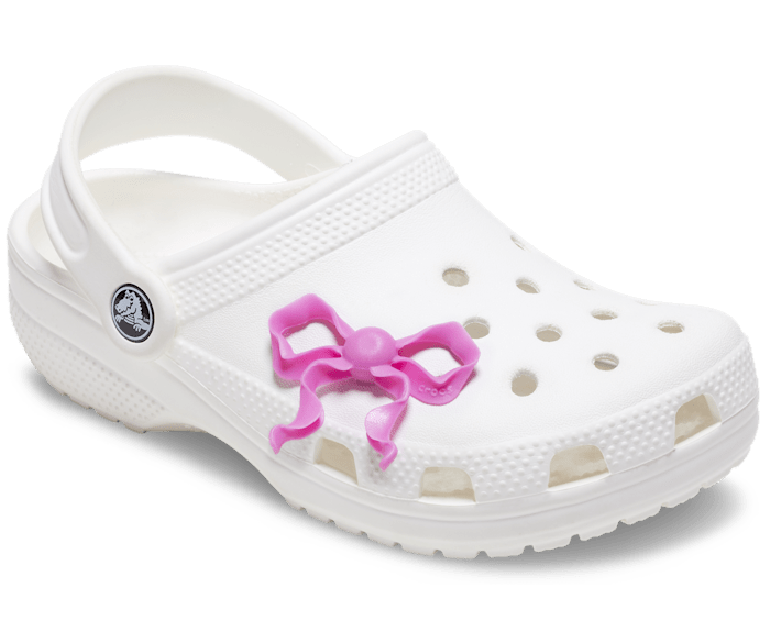 Pop some personality into your shoes with this Meta Jelly Purple Bow Jibbitz™ charm. It's the perfect addition to your favorite pairs of clogs, slides, and more. Not a toy. Not intended for children under 3 years of age.