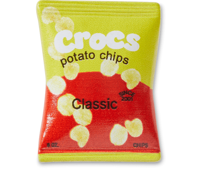 Pop some personality into your shoes with this Yellow Red Chip Bag Jibbitz™ charm. It's the perfect addition to your favorite pairs of clogs, slides, and more. Not a toy. Not intended for children under 3 years of age.
